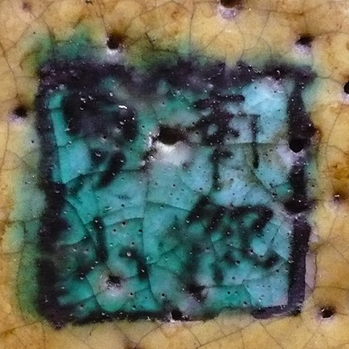 また、上部の肩には2つの紐を通すための耳を付けた双耳壺(そうじこ)を造り出していて、その突起の耳は寅の頭部として紐を通す輪は寅が口に含んでいる様となっています。管見にある南紀男山焼の遺物や伝製品の中では、他に類例がありません。極めて注目される遺物と考えます。